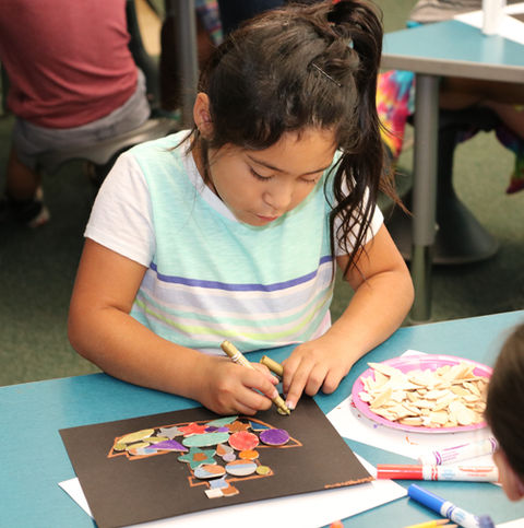 This year's program took place with 31 students in Ms. Spencer's second grade class at Acacia Elementary School in Fullerton. Dr. Ray Wolfe, Executive Director at the San Bernardino County Transportation Authority (SBCTA), kicked off the day with an interactive presentation to the students. The presentation was followed by an art project facilitated by WTS-OC members. Students traced different modes of transportation and made a mosaic by filling in the outlined shape with different shaped wood pieces that they colored.